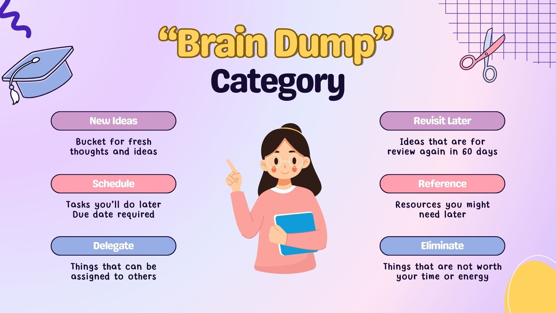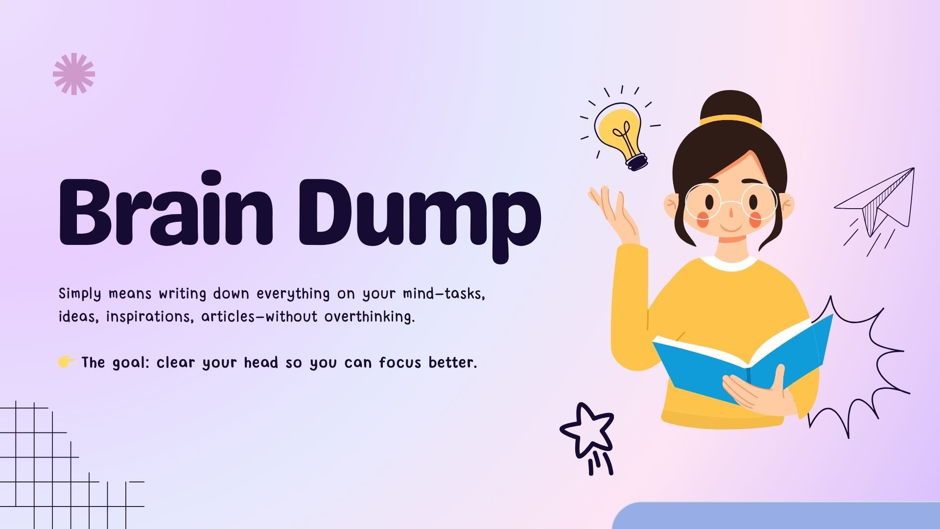 Clear your mind and capture every idea, task, or reminder in one place. This Brain Dump template helps you unload your thoughts so you can focus better and organize with ease later. πβ¨